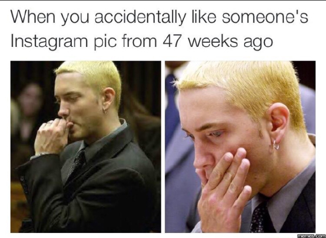 Oh damn, no. Nobody likes doing this. Whether you are rapturously enjoying your crush’s pics, or stalking someone you hate, when you accidentally hit “like”, you want to actually die. And you just KNOW they had notifications turned on. You KNOW it! ARGH!