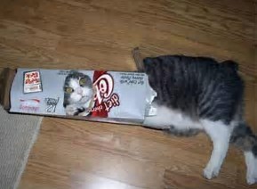 13. Fat cat stuck in a diet soda box. Ironic?