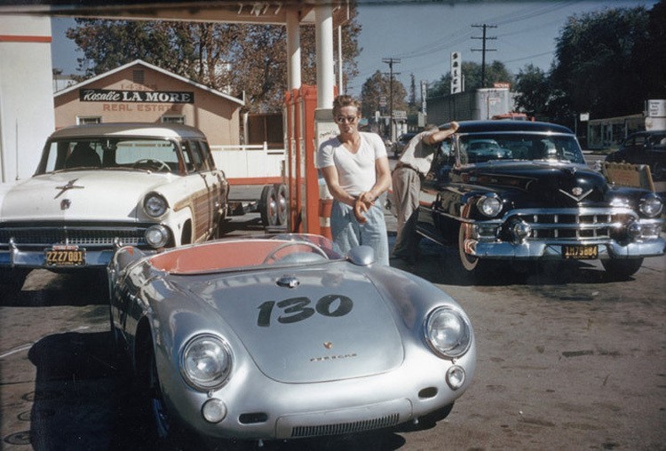 14. James Dean died moments after this photo was taken. He loved his Porsche Spyder, but only had it nine days before he crashed and died near Paso Robles, California. Ironically he was on his way to a race.