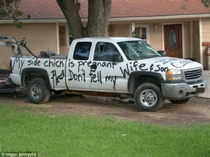 2. Dear cheaters, hide your sports car and the keys to your angry spouse’s truck.