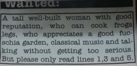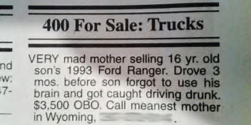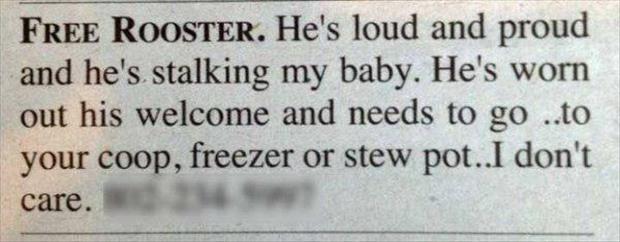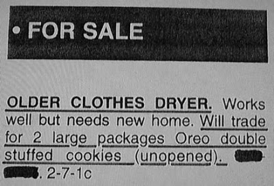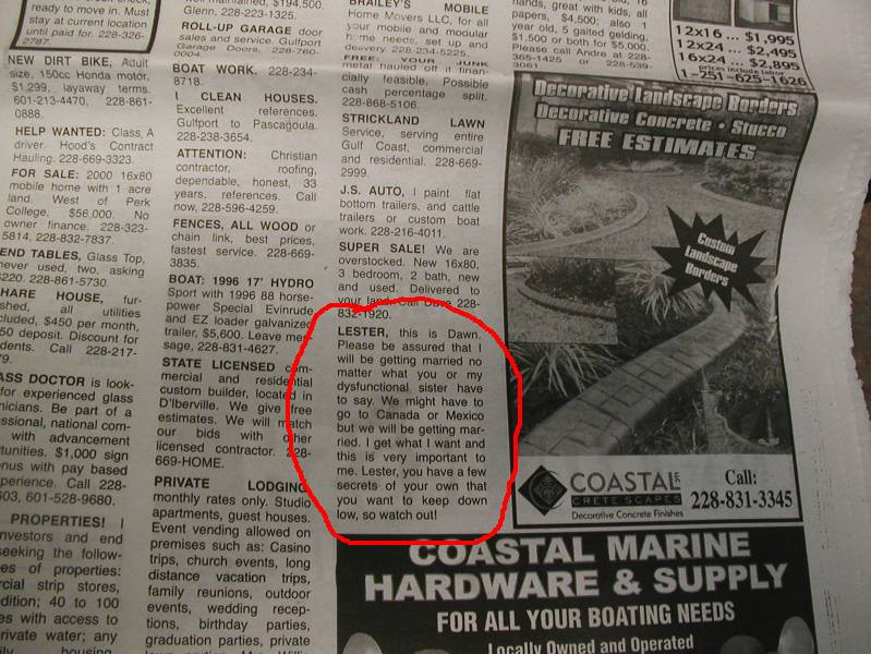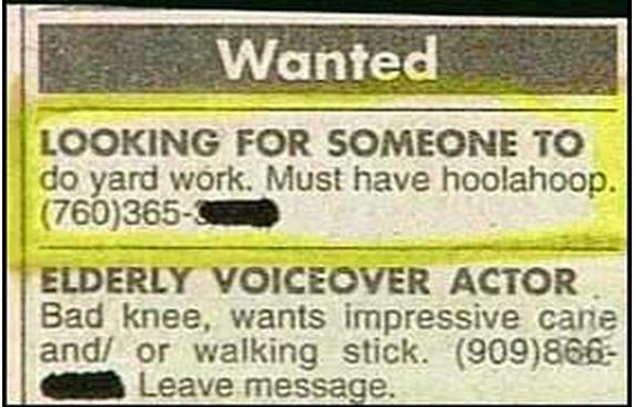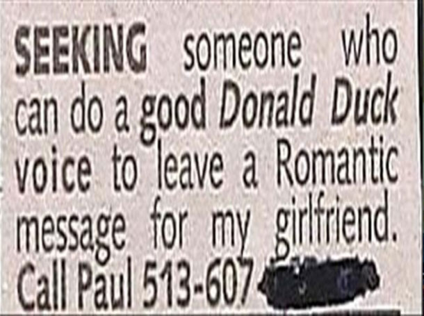 If you want to buy or sell something quickly then the local newspaper’s classified ad section is the way to go. You can find anything from appliances to animals for sale, trade and/or barter. It turns out you can also get yourself some free entertainment if you look close enough.