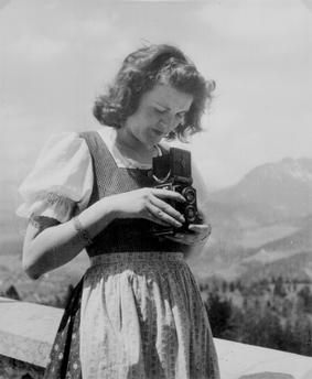 Baldur von Schirach later described her, “Eva was a worldly type of girl – bobbed chestnut-brown hair, a make-up that was unconventional for the time, fashionable pullover and short, narrow skirts, silk stockings and high-heeled shoes. I took her for a French girl. Usually she was walking a boxer dog. For me she was the most beautiful girl in Munich.”