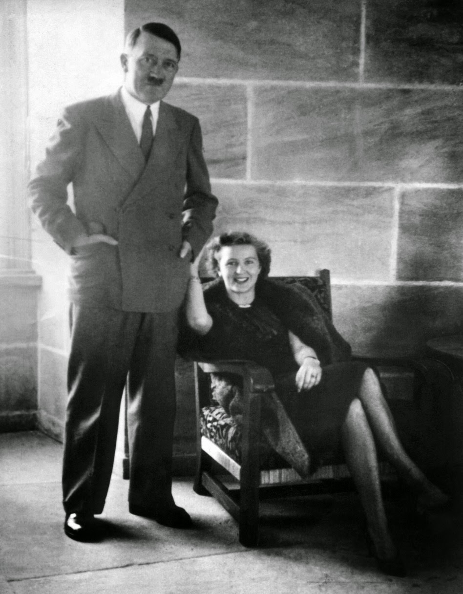 That’s where Braun and Hitler first met. Eva later told her sister,”I’d stayed on after closing time to file some papers and I’d climbed up a ladder to fetch the files kept on the top shelves of the cupboard. At that moment the boss came in accompanied by a man of uncertain age with a funny moustache, a light-colored, English-style overcoat and a big felt hat in his hand. They both sat down on theother side of the room, opposite me. I tried to squint in their direction without appearing to turn round and sensed that this character was looking at my legs… That very day I’d shortened my skirt, and I felt slightly embarrassed because I wasn’t sure I’d got the hem even.”